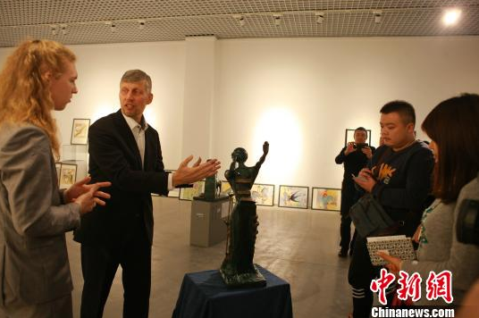 圖為亞歷山大·沙德林介紹達(dá)利的著名雕塑《燃燒的女人》高呂艷杏攝
