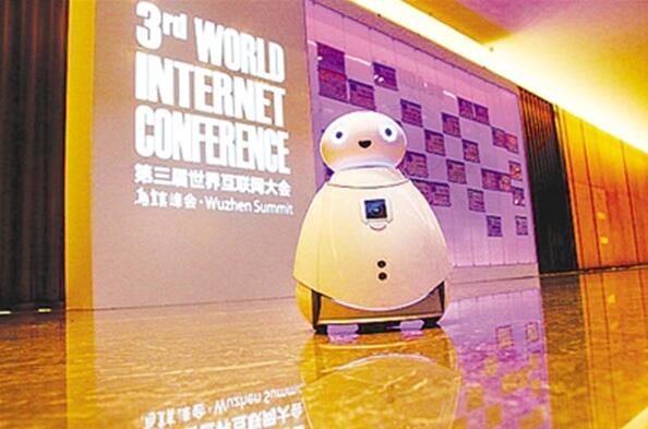 這次互聯(lián)網(wǎng)大會(huì)還“邀請機(jī)器人參與大會(huì)服務(wù)工作”:有移動(dòng)機(jī)器人“奧科流思”正在暖心地向與會(huì)嘉賓播報(bào)報(bào)到注冊注意事項(xiàng)、天氣預(yù)報(bào)以及愛心提醒,并與嘉賓互動(dòng)聊天;在大會(huì)的咖啡廳,暖萌可愛的“奧科流思”還可以協(xié)助嘉賓點(diǎn)餐……