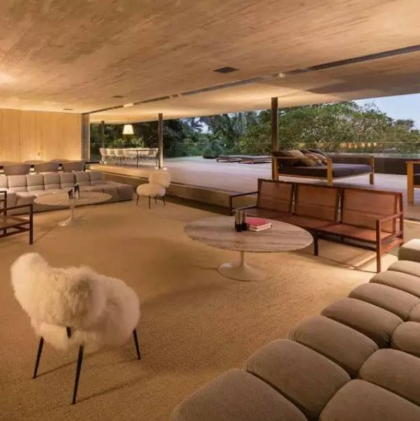 這是一座融入自然的混凝土住宅,屋頂上的游泳池在沿海熱帶雨林茂密的樹冠中若隱若現(xiàn)。室內(nèi)粗糙的混凝土和木結(jié)構(gòu)都外露可見,并搭配有各種質(zhì)地的中性色家具。