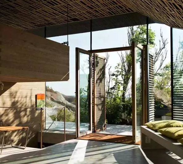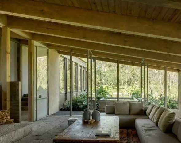 在墨西哥景區(qū)Valle de Bravo里,CC Arquitectos使用風(fēng)化后的石頭、天然木材和大片玻璃創(chuàng)造了這處森林住宅。臥室和起居室之間組成了一個(gè)花園區(qū),這里有水池和浴池,被安裝在灌木叢中。