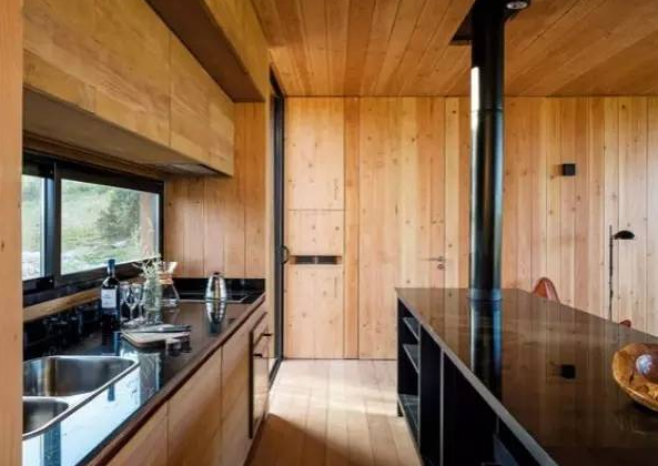 這座小屋建造在斯堪的納維亞大自然的峽灣中,只有一層,屋頂有巨大的露臺(tái)。木質(zhì)的墻壁和家具為房屋增添了一些暖意,浴室可以俯瞰大海。