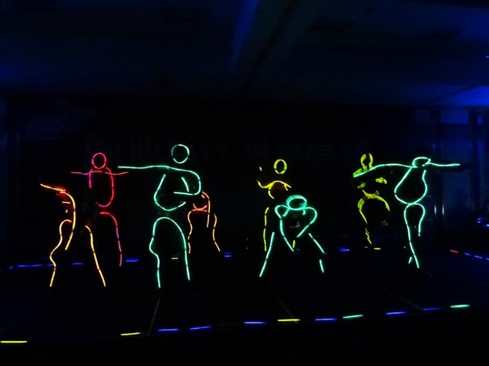 熒光舞服造型多變,也絕非專業(yè)舞蹈人士的專利,其中玩的最多、最流行、大眾化的非“熒光火柴人”不可,它使用操作方便,發(fā)光顏色多,穿上它在黑夜中猶如精靈,炫幻效果極佳,對年輕一族有著致命的吸引力。產(chǎn)品可廣泛用于年會演出、游戲節(jié)目、各種慶典、派對等,對于日常生活中那些喜歡??岬哪贻p人來說,也是一件不可多得的法寶。