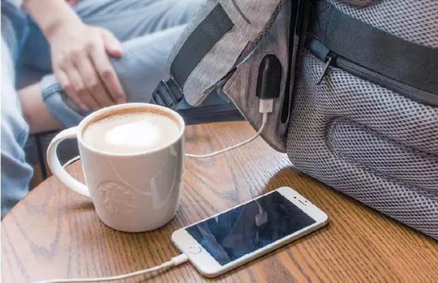 包上有一個 USB 口,直接連接到包里的移動電源