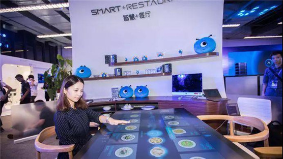 2、落座。未來智能餐廳的桌面實(shí)際上就是一張大尺寸的觸控顯示屏,顧客入座后,系統(tǒng)自動識別身份,然后通過輕觸桌面或手勢動作,即可打開智能點(diǎn)餐界面進(jìn)行點(diǎn)餐。