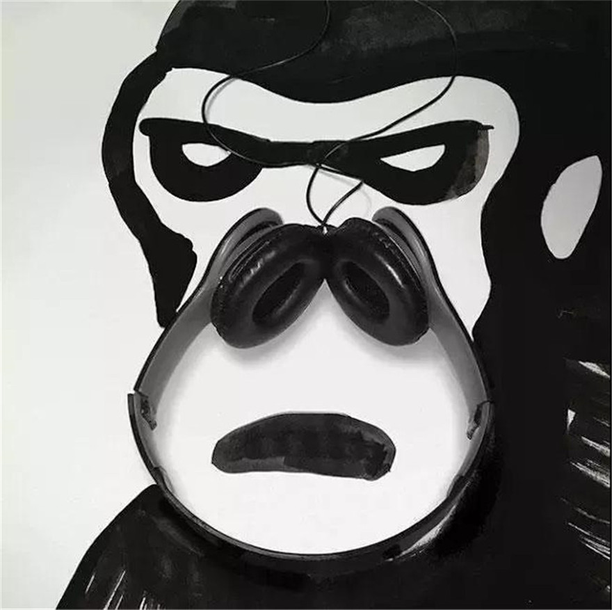 就比如說(shuō)他用耳機(jī)、剪刀、墨水瓶等很普通的東西創(chuàng)作出了許多非常有意思的作品