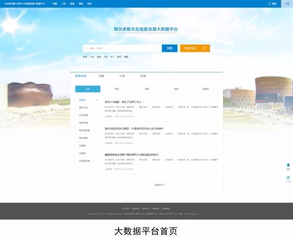 鄂爾多斯文化信息資源大數(shù)據(jù)平臺(tái)在鄂爾多斯市文化新聞出版廣電局的大力支持下,由鄂爾多斯市億尋科技有限責(zé)任公司公司于 2017 年 10月正式開(kāi)始建設(shè)。目前公司已經(jīng)投入資金 100 多萬(wàn)元,完成了《鄂爾多斯文化信息資源大數(shù)據(jù)平臺(tái)建設(shè)方案》的編制和專(zhuān)家論證;組織專(zhuān)業(yè)力量編制完成了《鄂爾多斯文化信息資源元數(shù)據(jù)規(guī)范》、《鄂爾多斯文化信息資源組織分類(lèi)體系》和《鄂爾多斯文化信息資源建設(shè)標(biāo)準(zhǔn)》;組織專(zhuān)人到鄂爾多斯 9 個(gè)旗區(qū)和市直文化部門(mén)采集收集到文化信息資源 3.6TB,并進(jìn)行了梳理和整理;開(kāi)發(fā)完成了文化信息資源大數(shù)據(jù)平臺(tái)的“資源編目系統(tǒng)”、“分布式資源庫(kù)管理系統(tǒng)”,其它 9 個(gè)子軟件系統(tǒng)正在按照計(jì)劃開(kāi)發(fā)中。