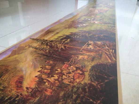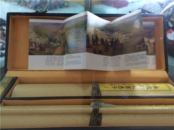 《永遠(yuǎn)的成吉思汗》卷軸分上下兩卷,每卷長達(dá)37米,每套定價(jià)1560元,《蒙古歷史長卷》小畫冊短小精悍,當(dāng)前每冊定價(jià)38元,藝術(shù)地再現(xiàn)了1162年成吉思汗誕生至1368年北元建立的206年的重大歷史史實(shí),備受中外游客喜愛。